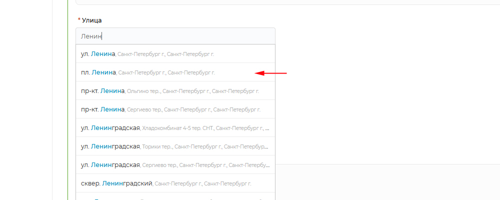 Начните вводить название улицы и выберите нужную Вам из предложенного списка.