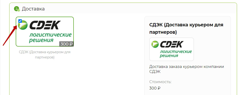 В случае возможности доставки заказа по специальной партнерской цене Вам необходимо будет выбрать службу доставки. Для этого отметьте ее галочкой.
