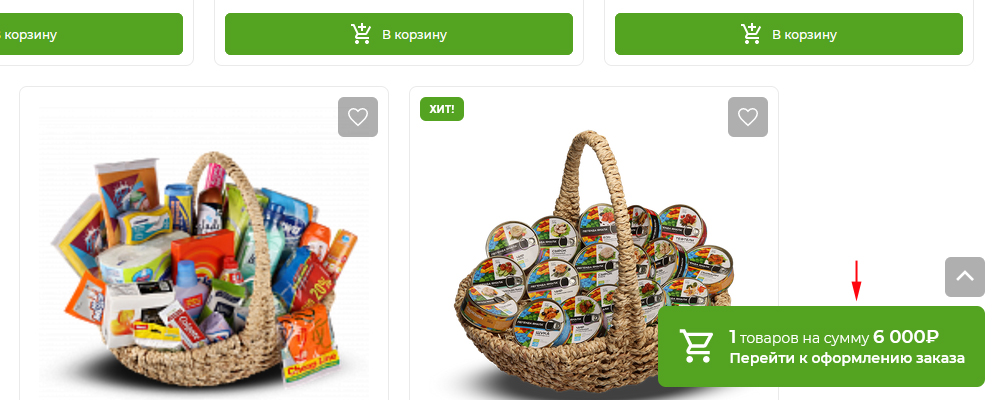 Добавление товара в корзину