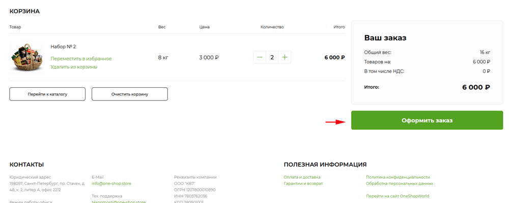 Нажмите кнопку "Оформить заказ".