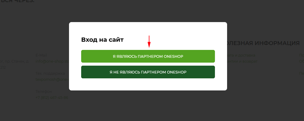 Если Вы не авторизованы на сайте, то система предложит вам войти. Если вы партнер OneShopWorld, то нажмите кнопку "Я являюсь партнером".